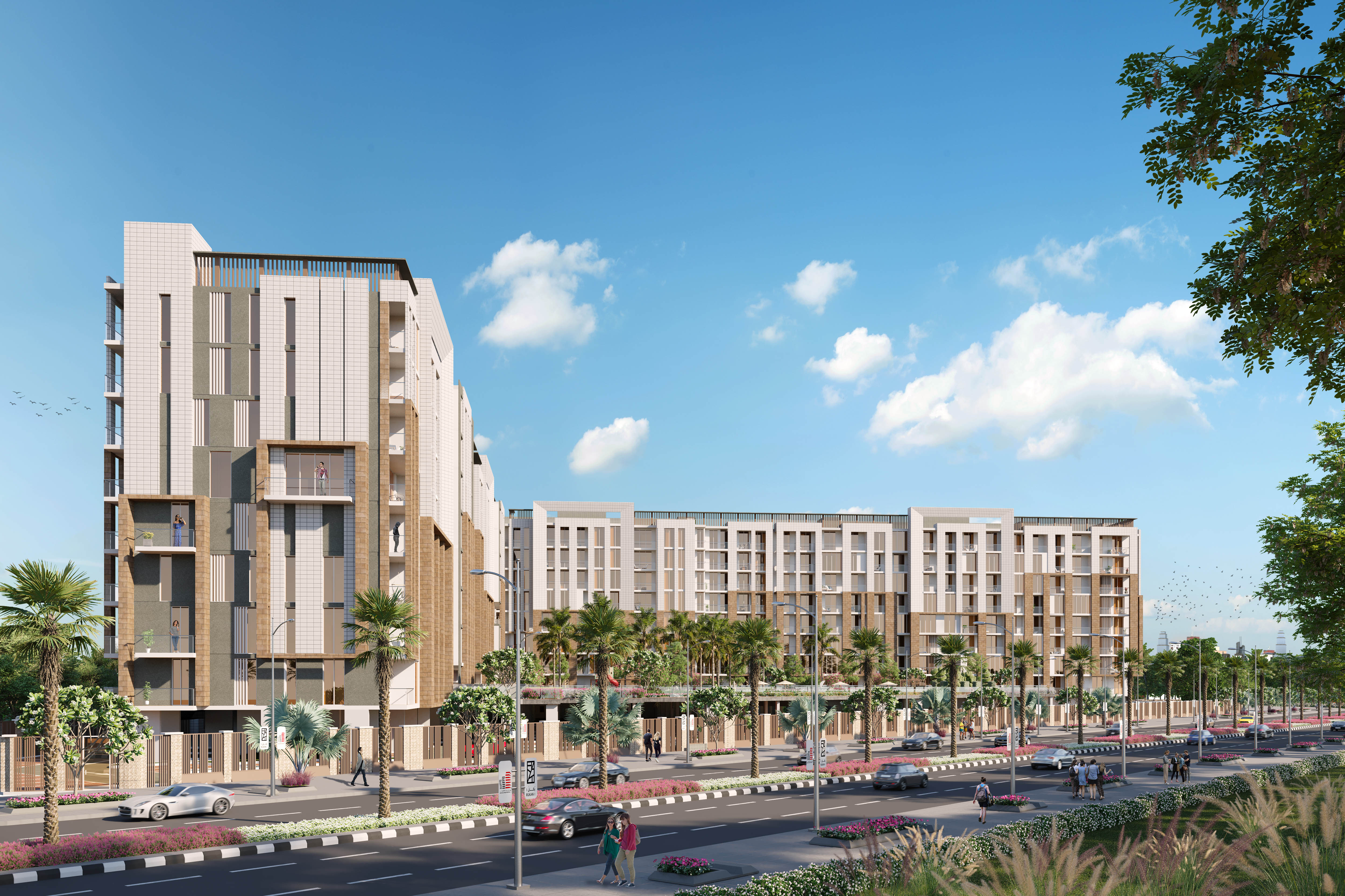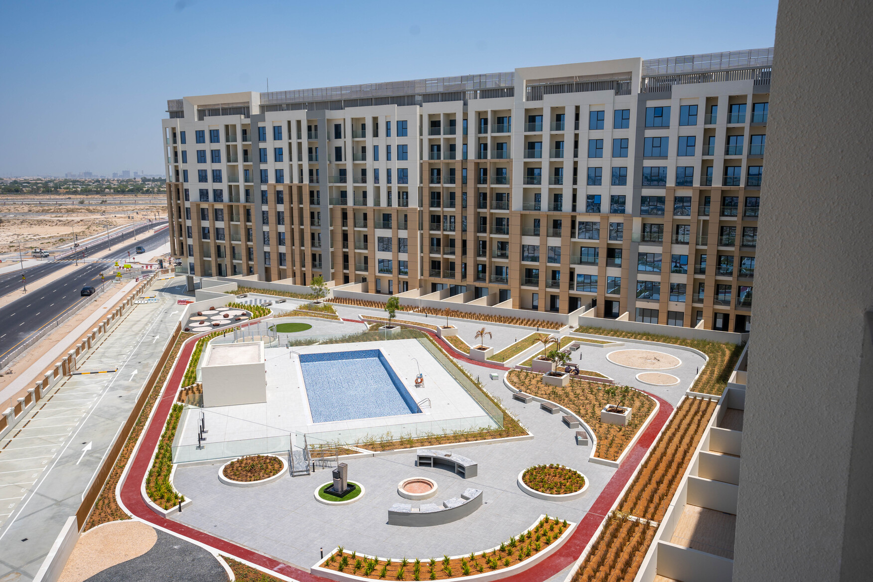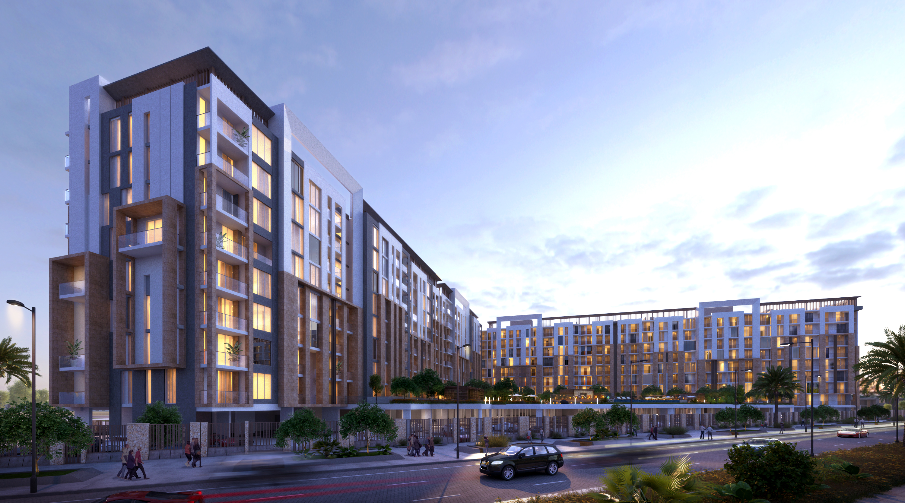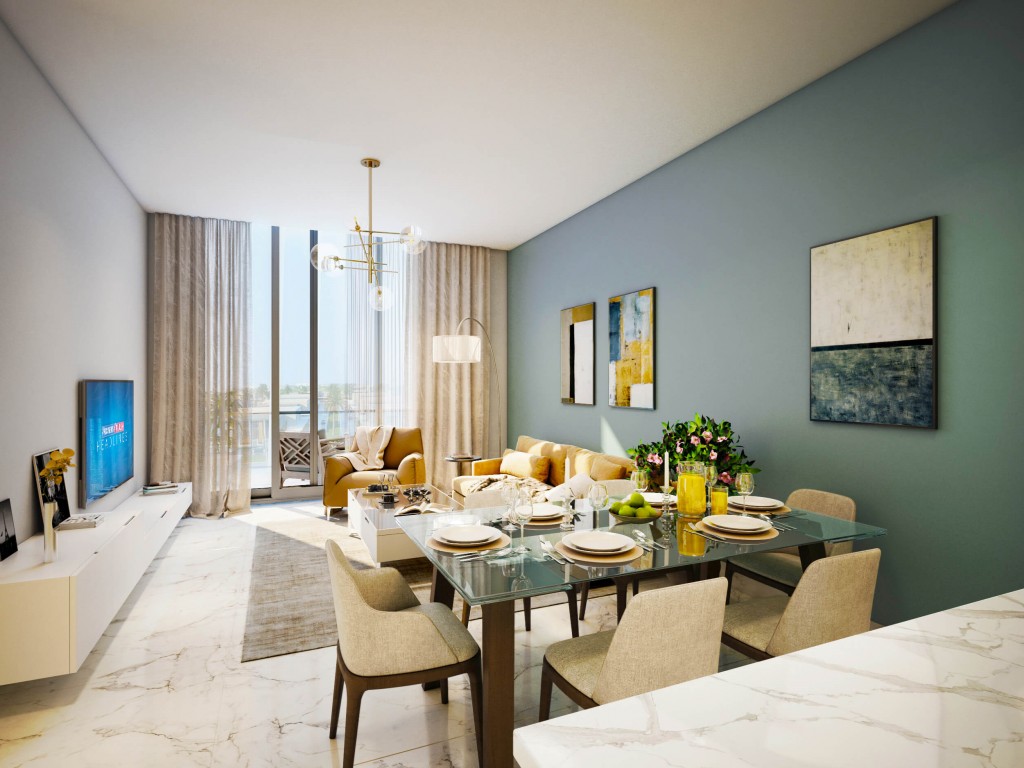 From the modern well-designed facades to the neutral color palette, Rukan Tower is designed to meet all needs and tastes of residents. With a height of 30,05 m, this mid-rise tower elevates over the standards of luxury and functionality. The high-quality facades and the double-glazed windows are perfectly designed to ensure the units’ great share of air and sunlight, with a neutral palette of earth colors that blends with the surrounding greenery forming a vivid image of harmony and coherence. The building is surrounded by many elements that make life a better place, not only landscape and greenery but also open spaces, parks, play areas, swimming pools and all you might need is available in Rukan community.