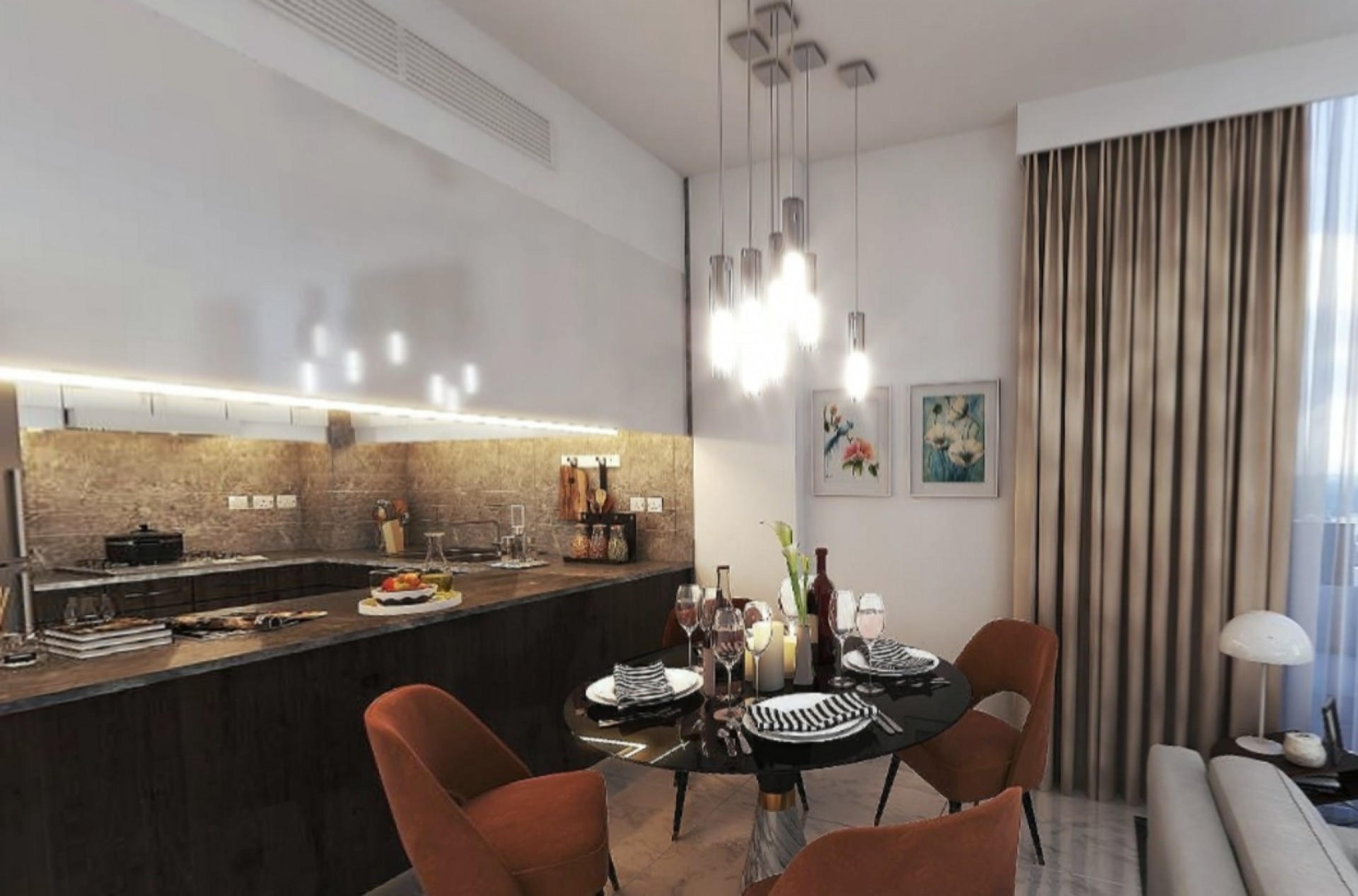Designed to fit all the needs and every refined taste, Rukan Tower’s modern designs never fail to impress. From the high-quality finishing and the neutral color palette to the perfectly designed divisions, every detail is well thought of and a masterpiece on its own. Air and sunlight always find their way to your little heaven and balconies and terraces will never leave you unenergized. Whether a family home or a bachelor’s, Rukan Tower will always offer you the life you aspire for. Kitchens and Bathrooms are never a small detail; they are perfectly designed to meet your expectations of functionality and refined taste. All kitchens are equipped with kitchen cabinets and scratch-free countertops, and bathrooms, whether en-suites or guest bathrooms are fully tiled with high-quality finishing, bathtubs, and showers.