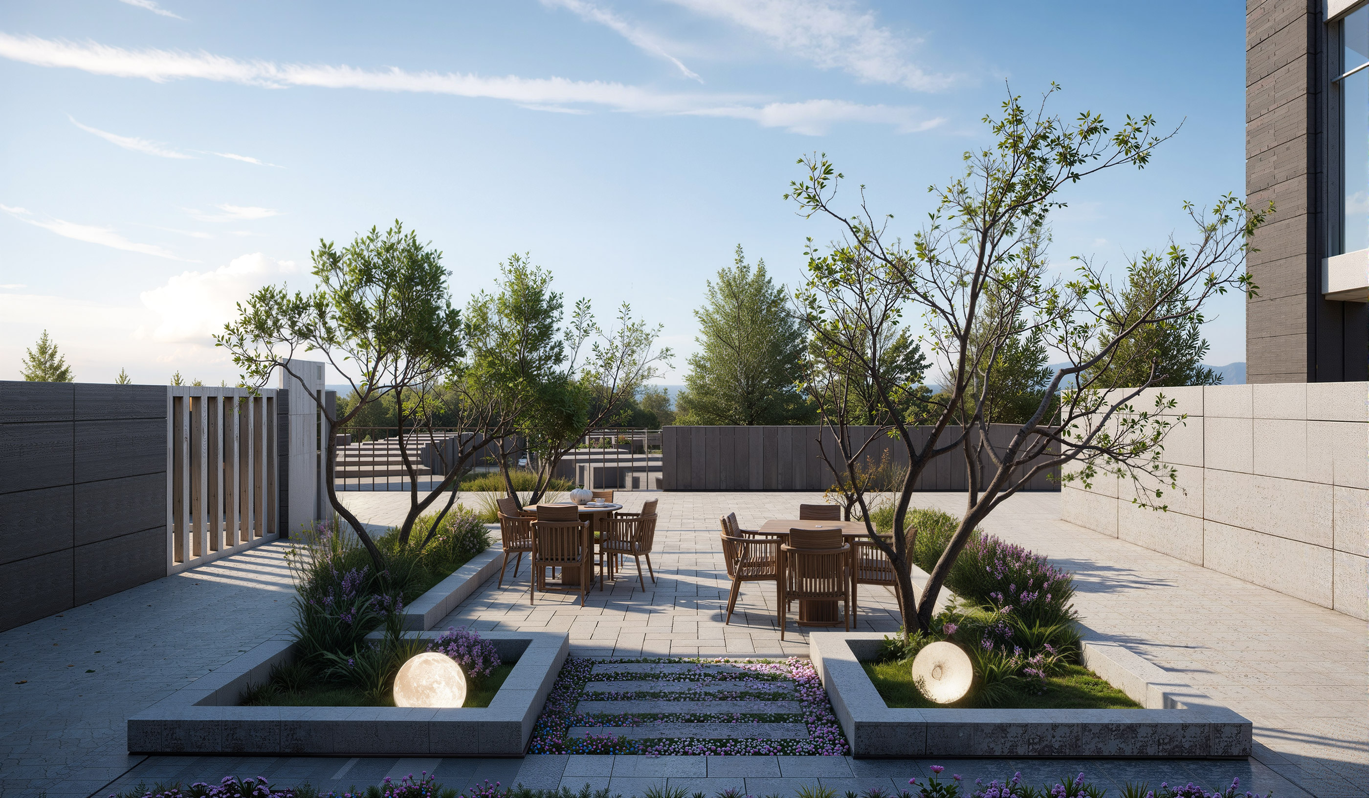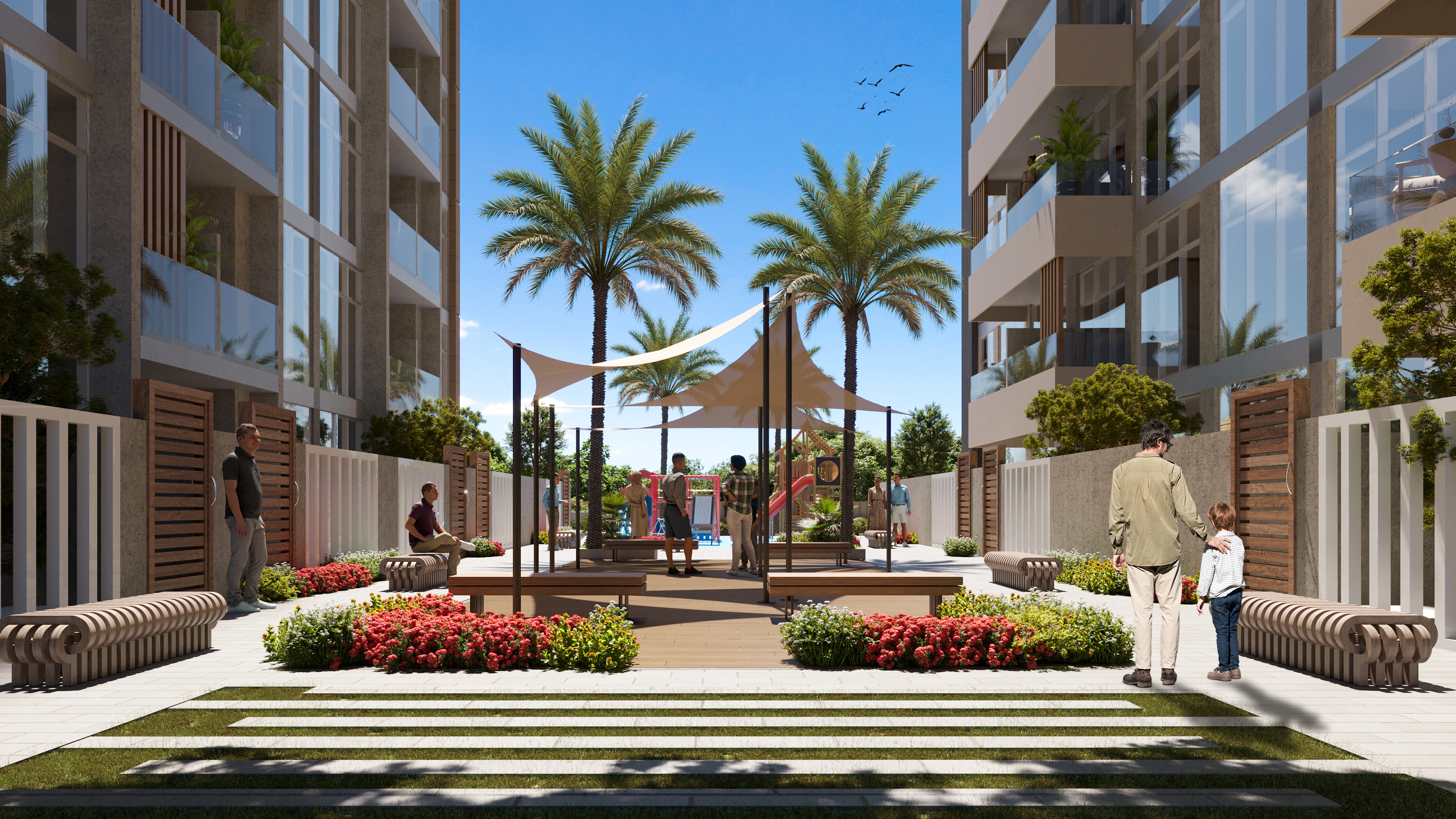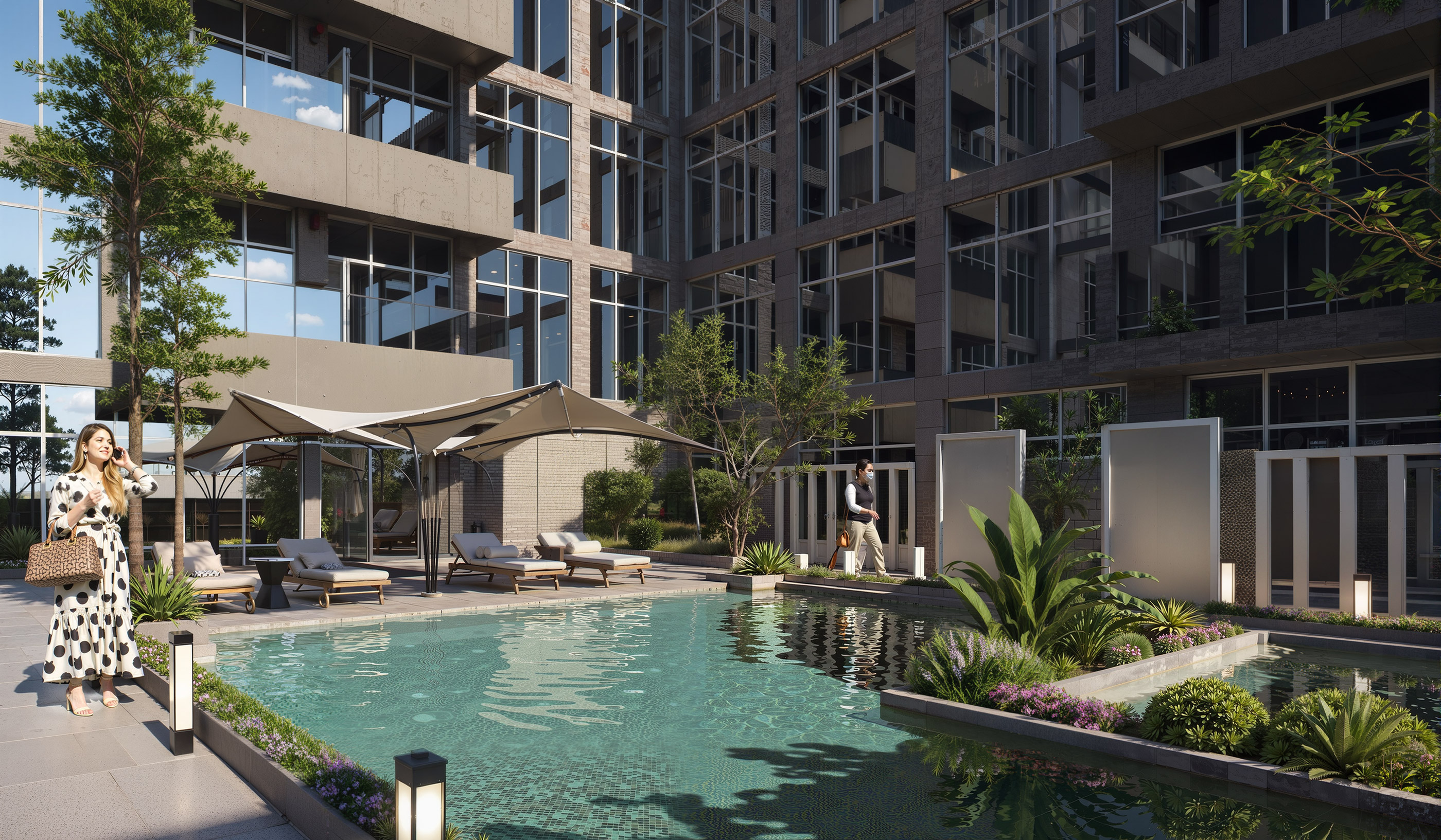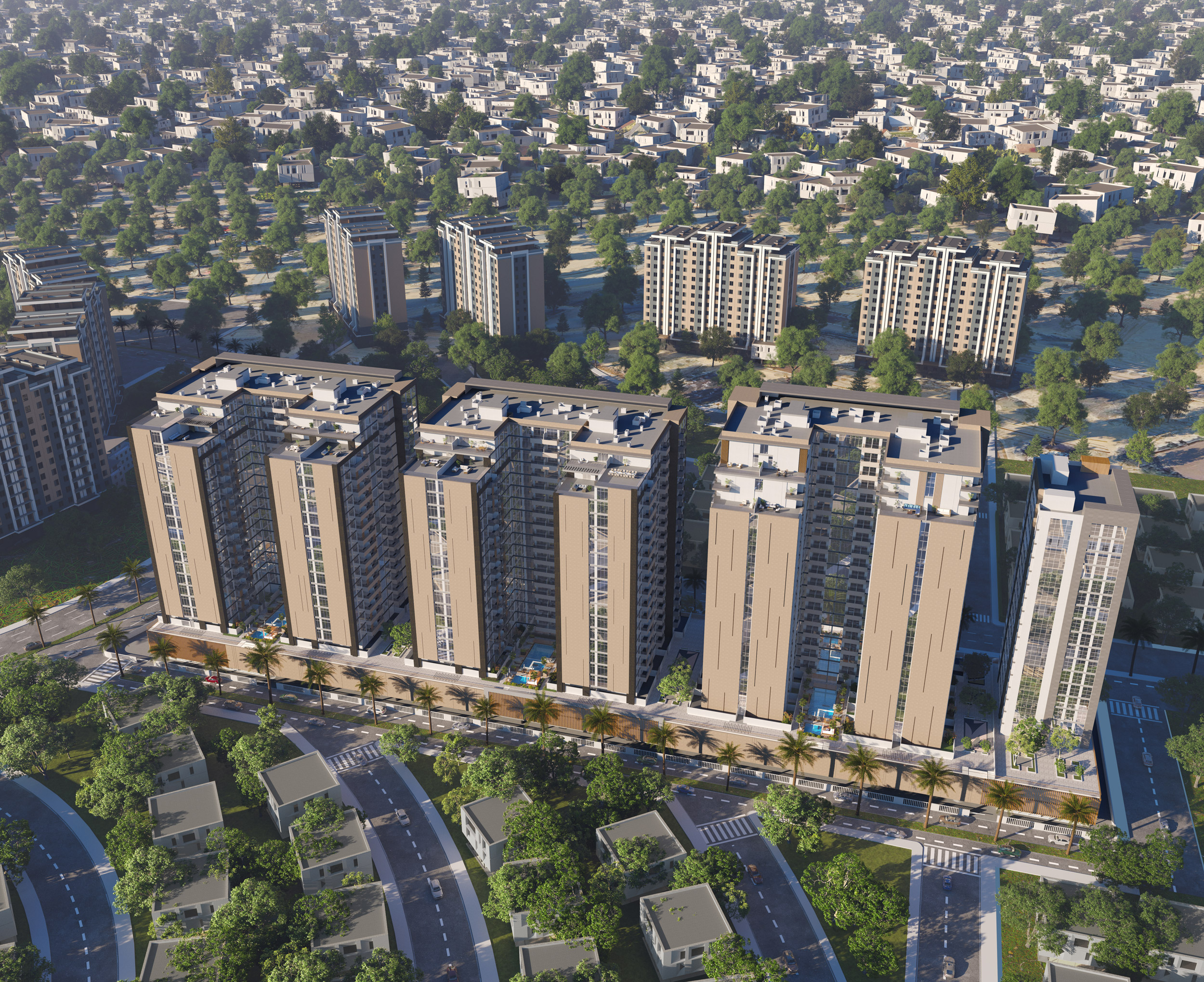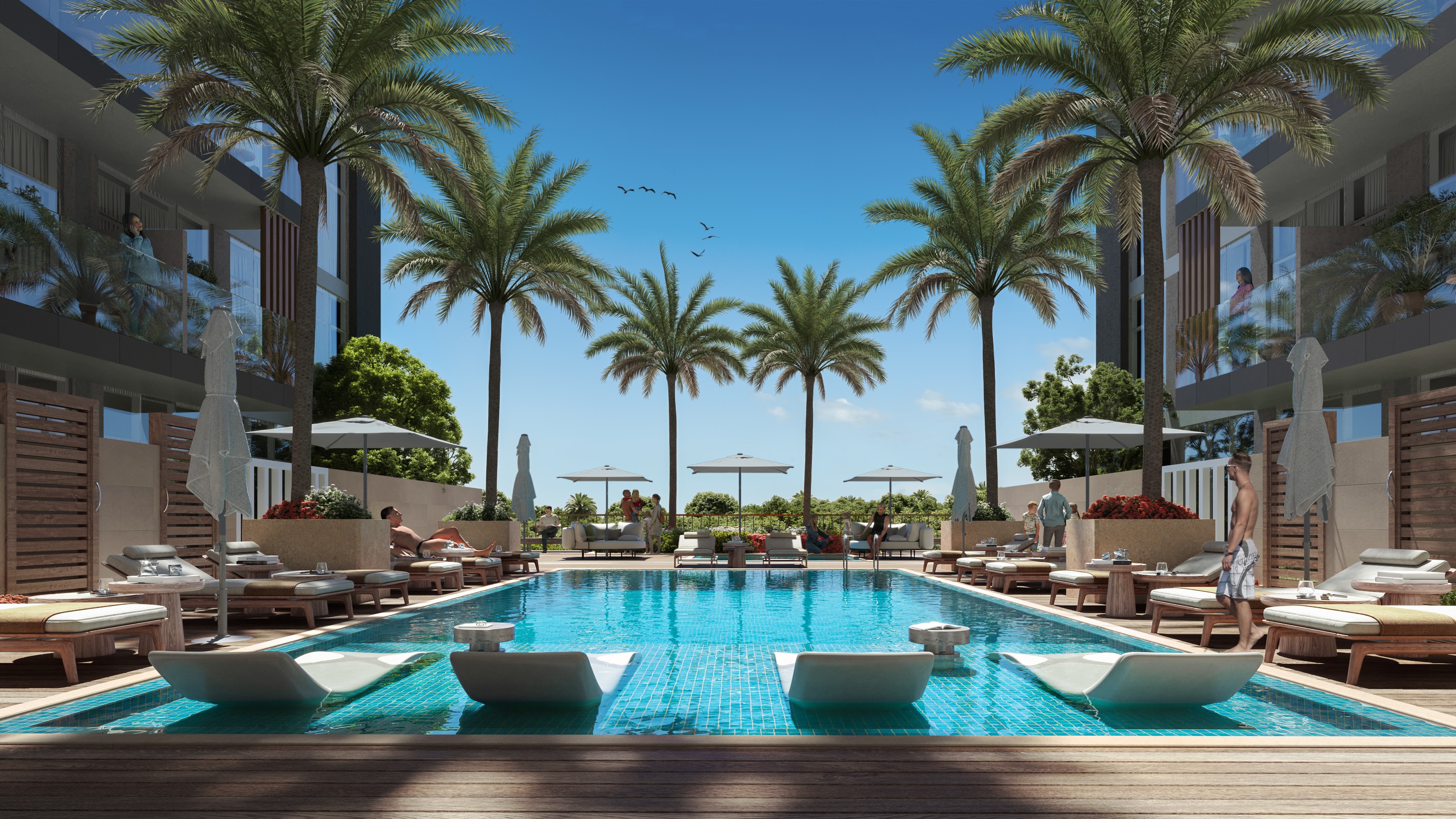 Captivating white facades that reflect the beauty of lush greens, and a blend of modernity and elegance, all within an integrated community of masterful architecture.